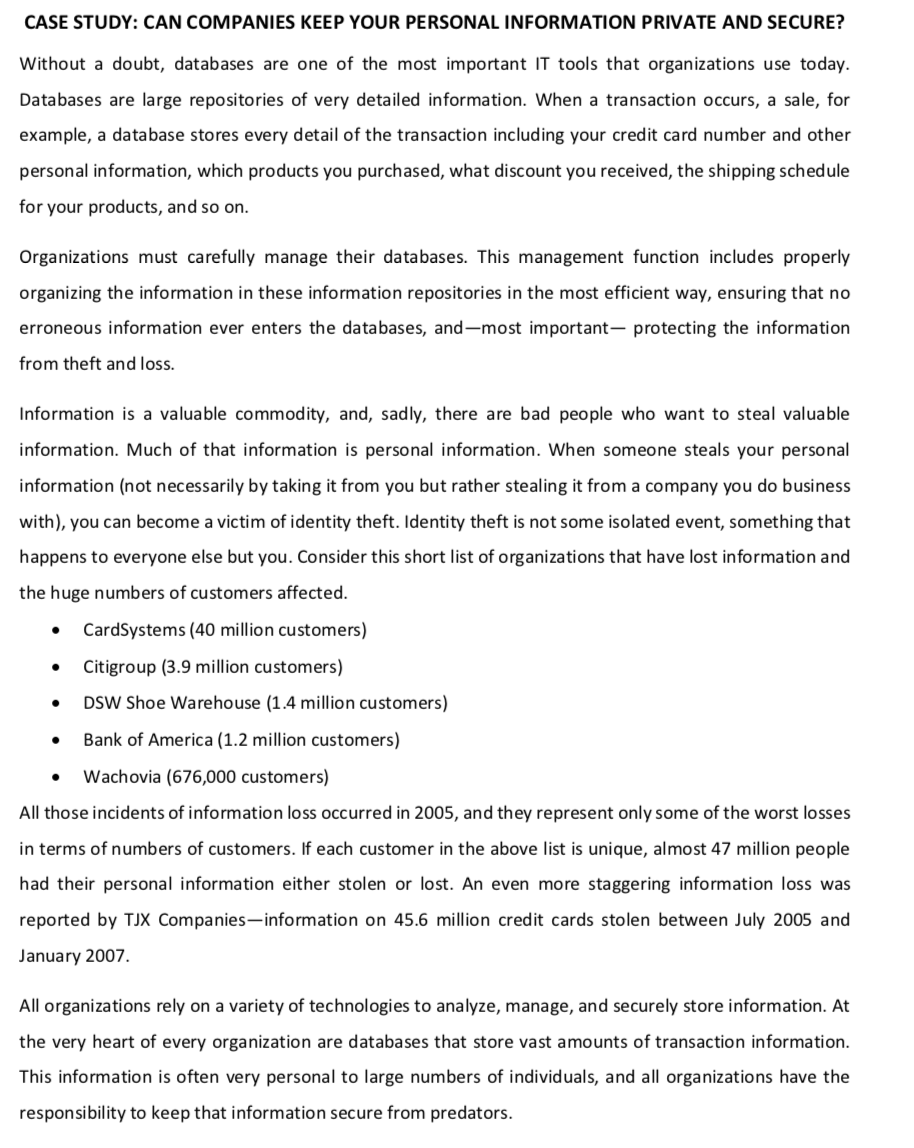 Solved Case Study Can Companies Keep Your Personal Chegg Com